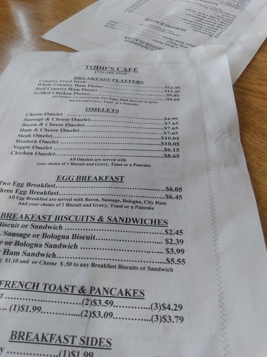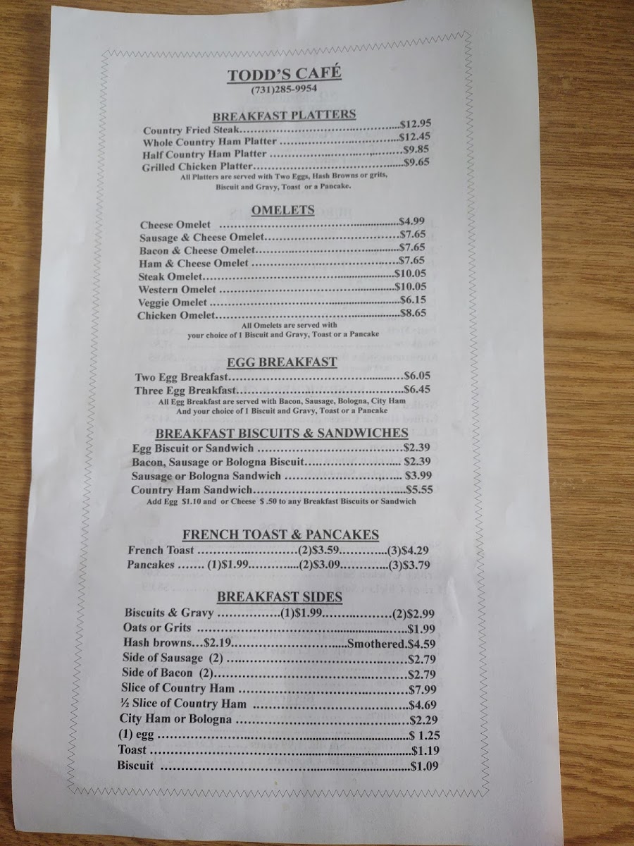 Welcome to Todd's Cafe, a charming family-owned eatery nestled in the heart of Dyersburg, TN. As you step into this quaint cafe at 216 E Court St, you're greeted by the warm and inviting atmosphere reminiscent of classic small-town diners. The menu features an impressive selection of breakfast biscuits and sandwiches, including the delightful Egg Biscuit for just US$2.30 and the sumptuous Country Ham Sandwich at US$5.75.
